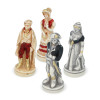 Chess pieces battle Romans vs Barbarians in hand painted alabaster and resin